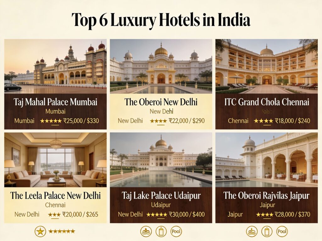 You’ve decided to visit India, and now comes one of the most important decisions: where to stay. India’s luxury hotel scene is world-class, with properties ranging from modern 5-star hotels to historic palace stays that feel like stepping back in time. Whether you’re planning a romantic honeymoon, a cultural exploration, or a high-end business trip, this guide covers the best top-rated hotels in India, what to expect from each property type, and how to find the best deals on luxury accommodations.